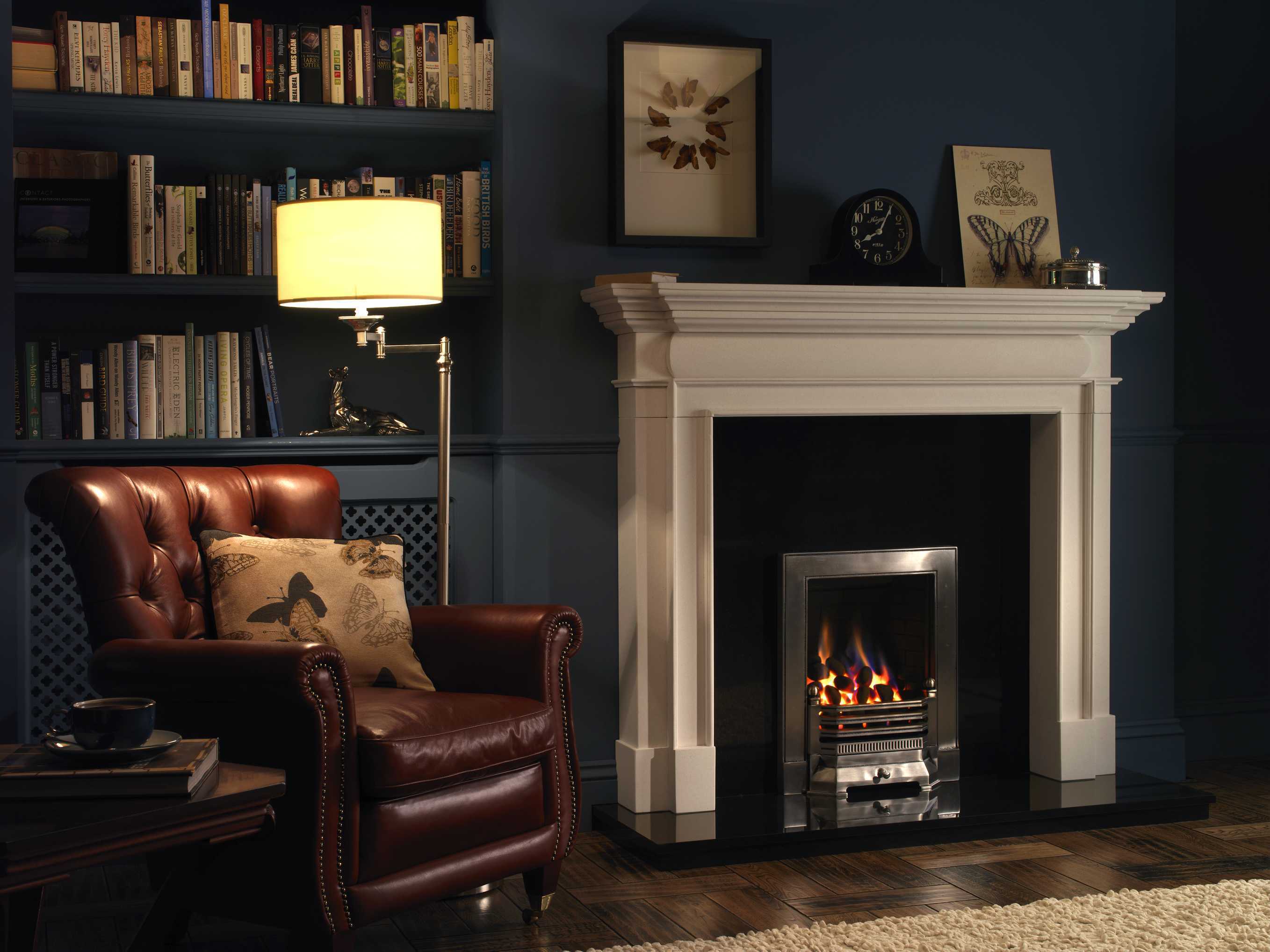 Beautiful hand polished cast fascia in satin chrome finish or black. An eclectic mix of classical design features from period fireplaces that transcend the fashions of time.